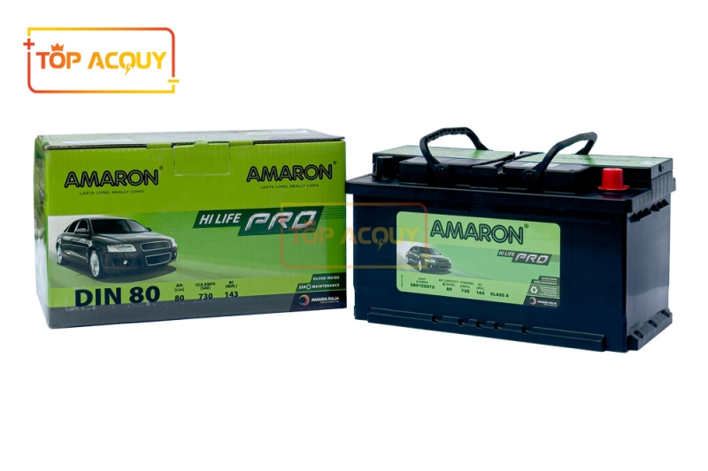 - Ắc quy Amaron Pro DIN80 12V - 80Ah có khả năng dự trữ điện nâng cao, giúp ắc quy không hư hại, giảm tuổi thọ sau thời gian dài không sử dụng xe