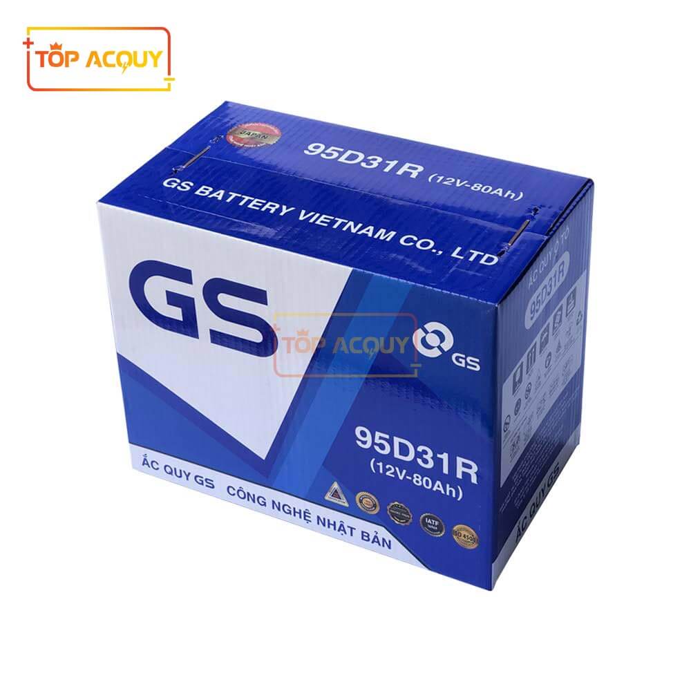 Bên cạnh các thương hiệu ắc quy nhập khẩu nổi tiếng, một thương hiệu trong nước với nguồn vốn 100% nước ngoài cũng rất được người tiêu dùng lựa chọn, đó chính là GS Việt Nam. Ắc Quy GS 95D31R 12V - 80Ah là sản phẩm được đăng ký bản quyền bởi thương hiệu này được đông đảo khách hàng lựa chọn cho phương tiện của mình.