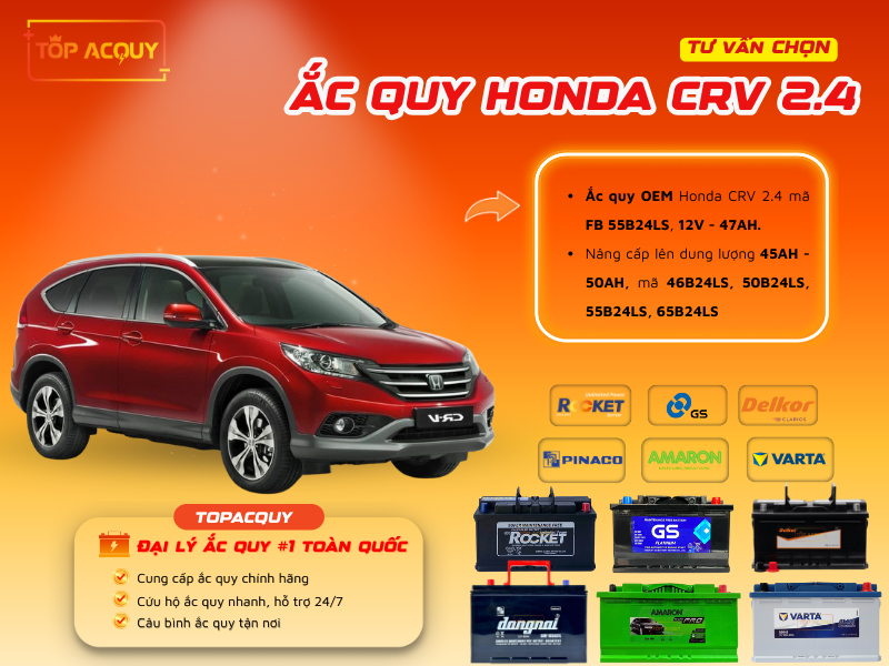 TOPACQUY chuyên cung cấp ắc quy Honda CRV 2.4 toàn quốc