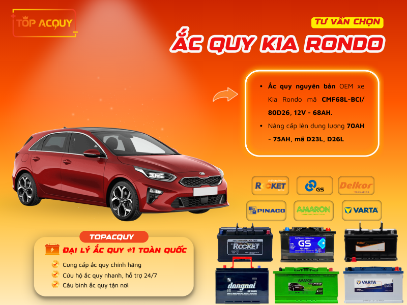 Hiểu rõ điều đó, TOPACQUY tự hào là đơn vị chuyên cung cấp và thay thế ắc quy Kia Rondo chính hãng trên toàn quốc, mang đến cho khách hàng sự an tâm tuyệt đối về chất lượng sản phẩm và dịch vụ.