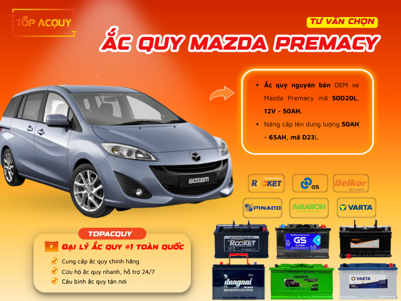 TOPACQUY chuyên cung cấp ắc quy Mazda Premacy toàn quốc