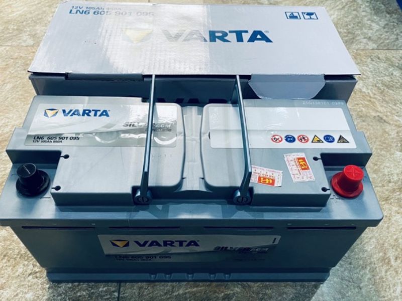 Điện áp 12V, dung lượng 105Ah, là ắc quy khô nên không cần bảo dưỡng, được nhập khẩu chính hãng tại Đức (trong khi các loại bình ắc quy khác của Varta được sản xuất tại Hàn Quốc).