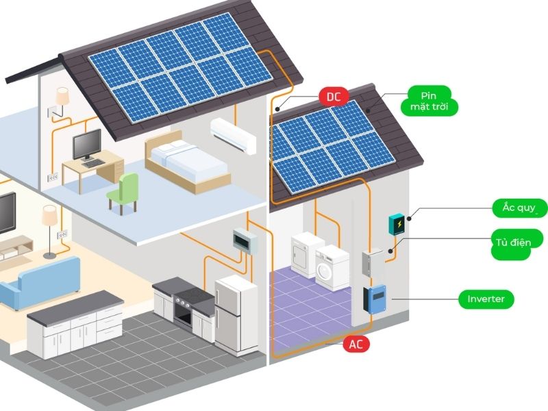 - Ắc quy đảm bảo có dung lượng tích trữ lớn cho hệ thống điện mặt trời vận hành tốt với việc tích trữ được nhiều năng lượng