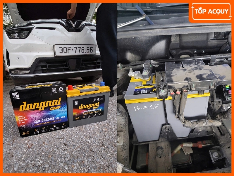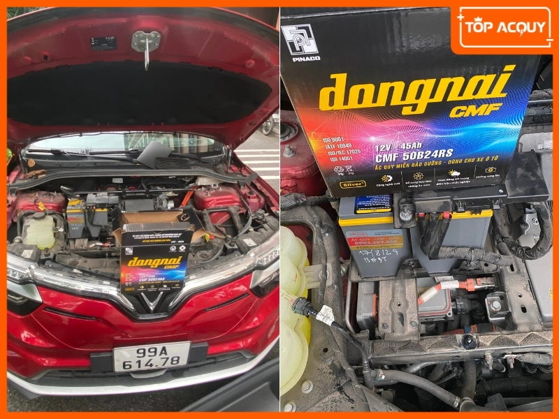 TOPACQUY thay bình ắc quy Đồng Nai CMF 50B24RS (12V-45Ah) cho xe điện VF8