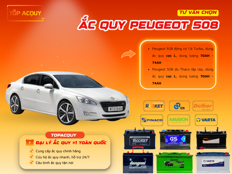 TOPACQUY chuyên cung cấp ắc quy Peugeot 508 toàn quốc