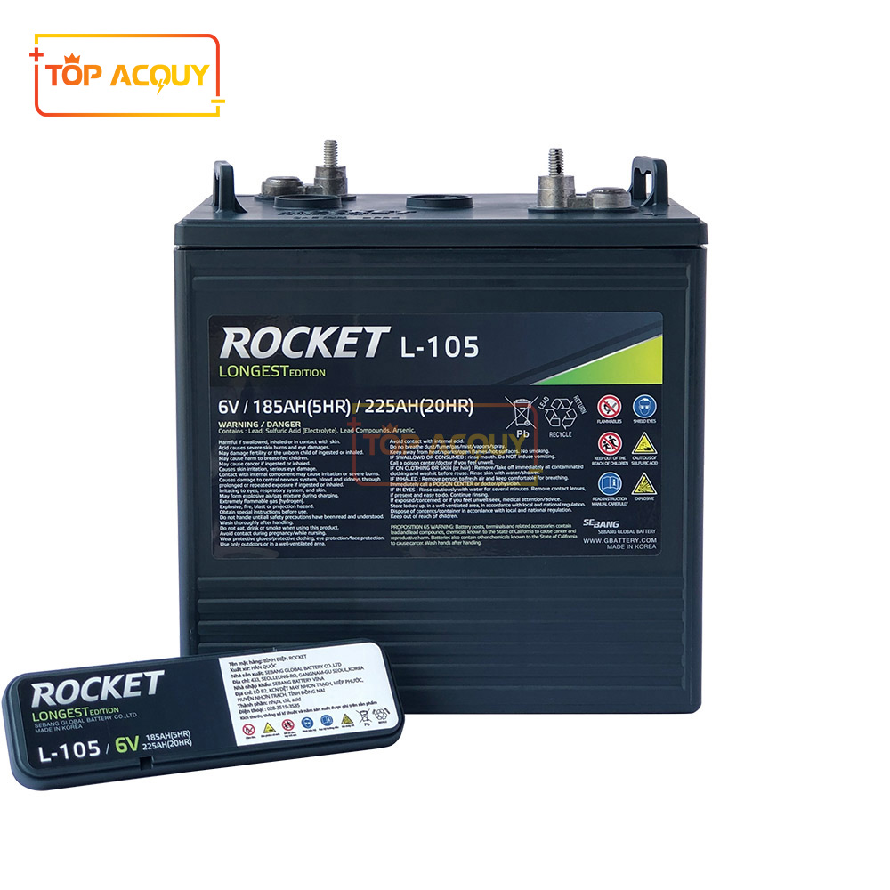 Acquy Rocket là sản phẩm của Rocket Battery thương hiệu nổi tiếng tại hàn quốc góp phần giải quyết một số yếu điểm vẫn còn tồn đọng của các loại ắc quy thông thường. Khi ra mắt dòng ắc quy Rocket L-105 6V - 225AH thì dòng sản phẩm này đã được bán rất chạy, bởi vì chúng có nhiều đặc điểm ưu việt nên rất được ưa chuộng.
