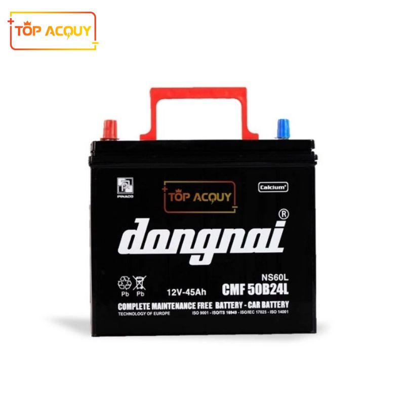 Bình ắc quy khô Đồng Nai 12V - 45AH CMF 50B24L được làm bằng hợp kim canxi chì, thiếc, bạc và các vật liệu khác nhập khẩu từ Úc. Điều này giúp ắc quy không bị tình trạng mất nước, hạn chế hiện tượng phóng điện.