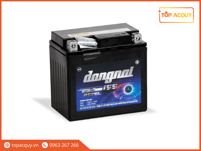 Ắc quy khô miễn bảo dưỡng Đồng Nai PTZ6L ISS dành cho xe SH mode có Idling Stop 12V - 6Ah
